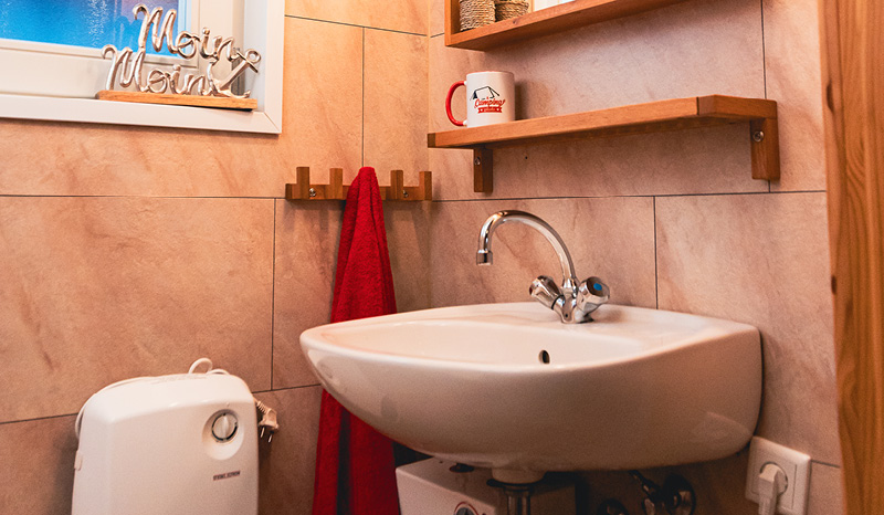 Unsere kleinen Badezimmer in den Ferienhäusern strahlen denselben herzlichen Schwedenlook aus und sind so gestaltet, dass sie dennoch gemütlich und funktional sind.