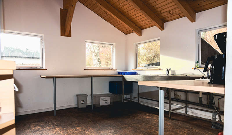 Unser Küchenhaus steht allen Nutzern des Tipi-Angebots zur Verfügung. Es bietet Koch-, Kühl-, Abwasch- und überdachte Sitzmöglichkeiten sowie einen Grillplatz.